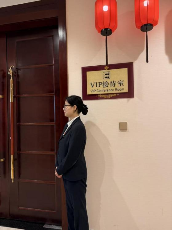叶思晴的实习工作岗位是会议接待。会议接待每天都在与时间赛跑。会前设备调试、资料摆放、茶水准备;会中秩序维护、需求跟进;会后场地整理、设备归位,每一项工作都需要严谨细致。会议接待让她明白,细节和效率是服务的核心,学会了会议接待不只是流程,而是要关注每个细节,体现对人的尊重。