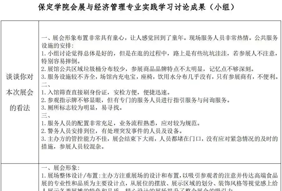 参展结束后,同学们聚集到一起,意犹未尽,分享着各自的所见所闻、所感所想,并积极认真完成各项任务,收获颇丰。