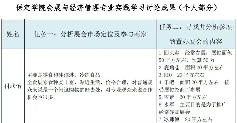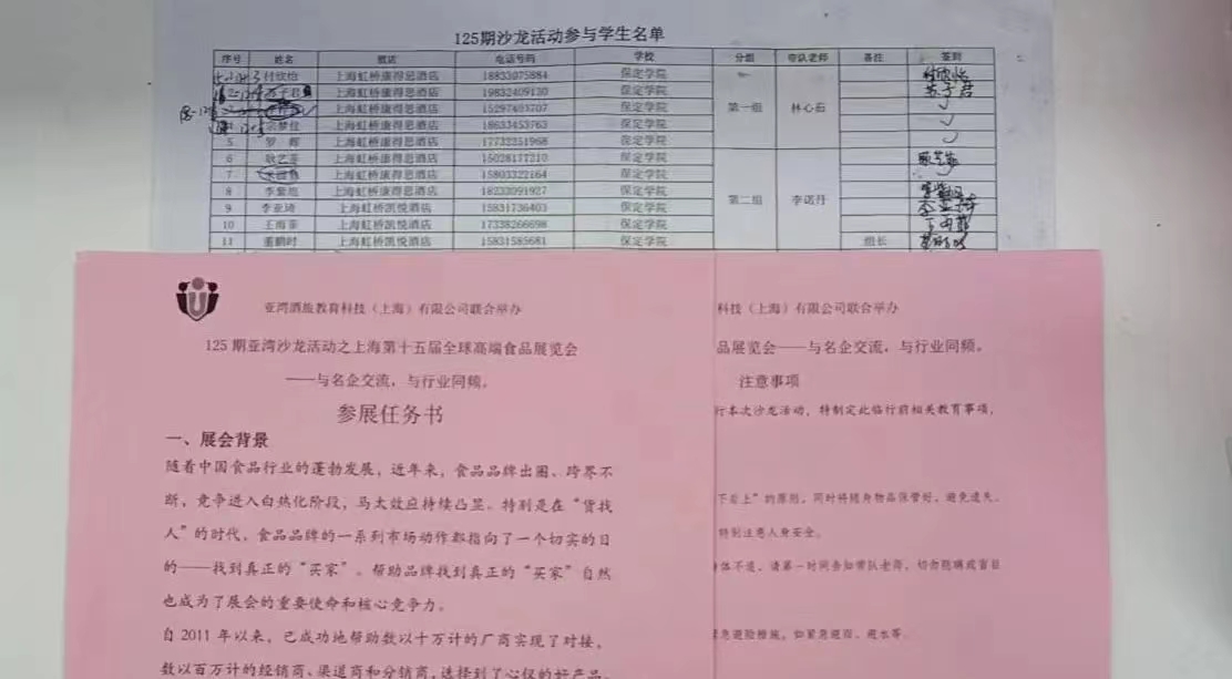 为帮助同学们更好地开展专业学习,亚湾实习指导老师给同学们带来了由学院专业指导老师精心设计的“第 21 届全球高端食品展览会参会任务书”,以及在此基础上提炼出的“个人任务书和团队任务”,让各位同学带着任务在展中学。