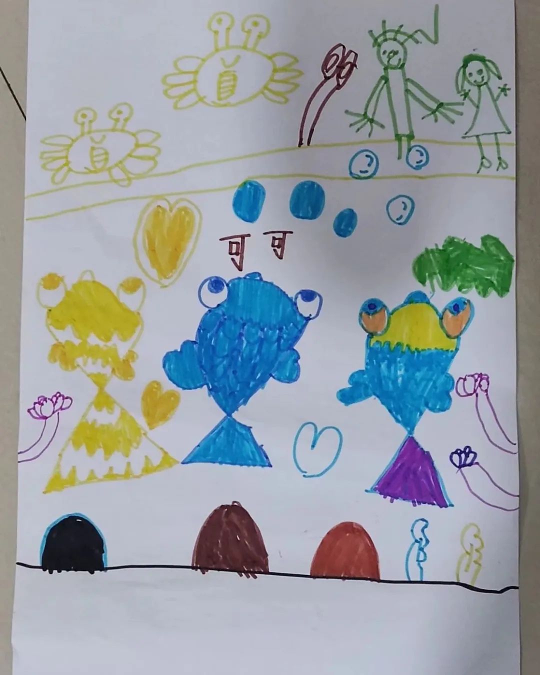 和小朋友一起画金鱼画,动手能力√