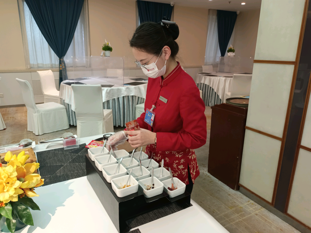 两会的餐饮接待将以自助餐的形式开展。所以最后我也铭记了自助餐菜品的摆放以及自助餐备餐和经营及最后收餐的工作流程。万事俱备只欠东风。那时时值二月中旬,距离两会开也只半旬。这时酒店各大领导班子已然开始了前期筹备工作。工作也越来越紧张。开始检查“家底”做各种物资筹备工作。二月下旬,我就开始每晚加班了,因为酒店有日常接待工作,在工作之余我们便会加紧布置,开始前最后5天我一连加班超过20个小时,而后人大代表先遣团将率先抵达。“战斗”正式打响。从那以后便开始了每日早班连班。虽然略显疲惫,但心有所盼!直到两会正式开始,这无疑宣告着以往的磨难所带来的东西都渐显成效。