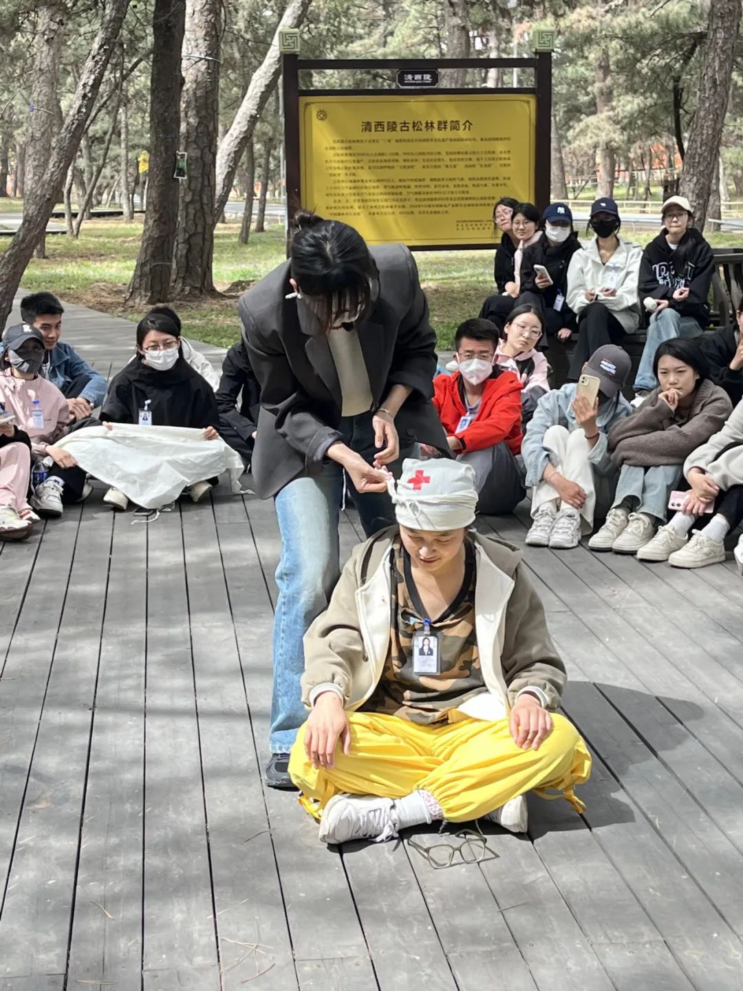 最后,同学们还学习了包扎方法。在模拟的紧急医疗处置场景中,他们迅速而准确地为“受伤”的旅客进行包扎,为旅客的安全与健康提供了有力保障。这次室外模拟练习让同学们更加深入地了解了航空服务的实际环境,也让他们更加熟练地掌握了专业技能。这些技能的掌握,不仅提升了同学们的专业素养,更为他们未来的航空服务之路奠定了坚实基础。