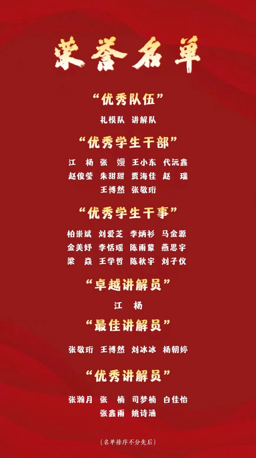 风起于青萍之末,浪成于微澜之间。这一年学生志愿团的同学们始终秉承“服务同学,锻炼自我”的宗旨,积极开展各项工作,为大家营造一个充满活力、团结向前的学习工作氛围,从中也涌现了许多优秀的集体与个人。主持人宣读了2023—2024学年学生志愿团表彰名单。在热烈的掌声中,高宇惟老师、杨光老师为获奖集体和人员颁奖。希望受到表扬的个人和集体不啻微茫,造炬成阳,在下一学年的工作中取得更加优秀的成绩。也希望获奖的同学秉持着每个人都可以成为向外传递力量的“光源”的信念,发挥榜样引领作用,为营造良好的工作氛围贡献自己的力量。