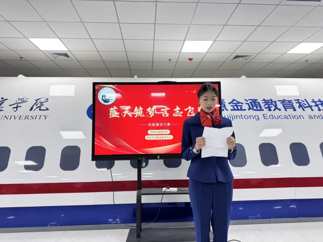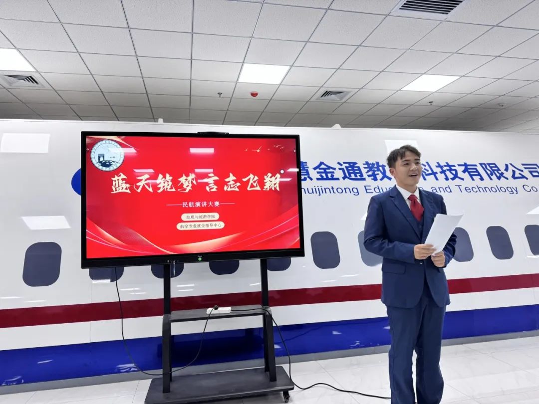 航空专业一直紧紧围绕立德树人根本任务,积极推进德育育人,通过形式多样,内容丰富的主题活动,进一步浓厚德育氛围,提升学生思想道德素质。为庆祝我校办学120周年,弘扬德育精神,展现新时代民航学子的活力与担当,航空服务艺术与管理专业于11月20日在X3-101模拟舱前成功举办以“蓝天筑梦,言志飞翔”为主题的民航演讲比赛。本次比赛由航空专业就业指导中心主办,2024级张楚浩主持。