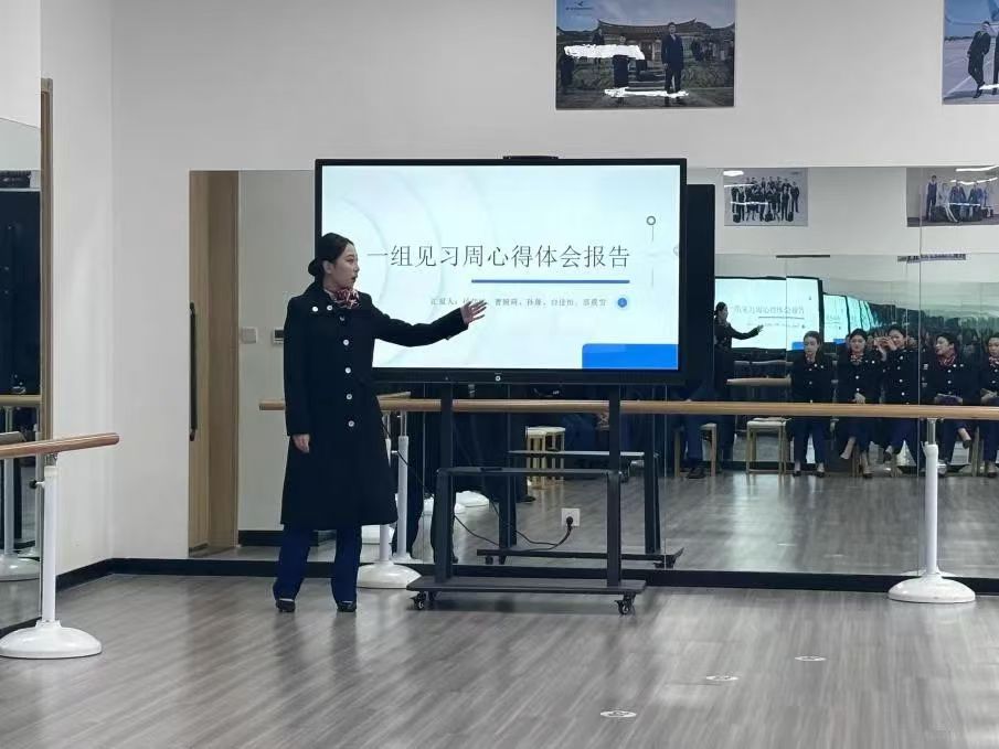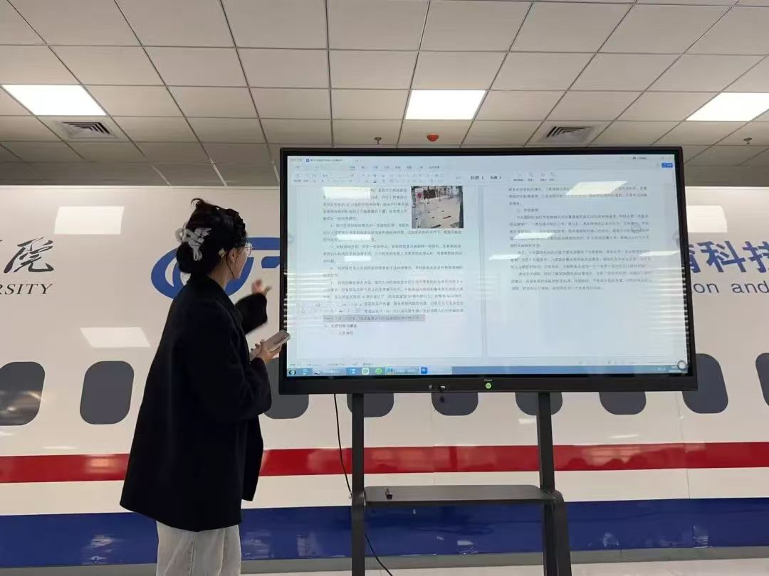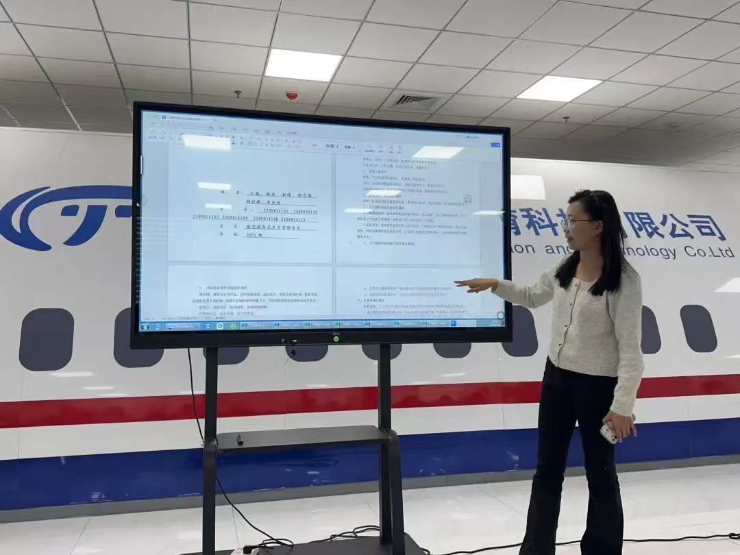11月8日,同学们在实训中心形体房将本次实践中收获的感悟以PPT形式呈现,图文并茂,充分分享。同学们将本组探究结果与生动实例进行分享交流。指导老师首先肯定了同学们的汇报成果,并对大家的调研成果进行了点评,鼓励同学们不断进步,在今后的学习和实践中继续展现航空学子积极向上的精神风貌。