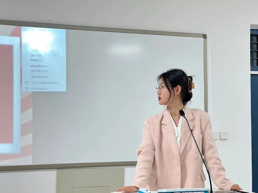 团总支宣传部部长田嘉美详细介绍了宣传部的工作内容、重要意义以及学分补录等重要工作,提出各位学生干部需要在工作中配合的重点。
