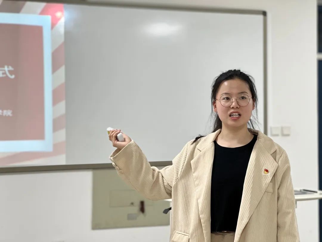 团总支组织部部长郭爱琳详细介绍了组织部党团建工作的内容、重要性以及需要各学生干部配合的重点。