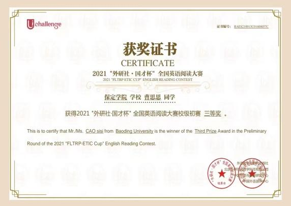 获奖情况:保定学院2021届本科毕业论文优秀指导教师。