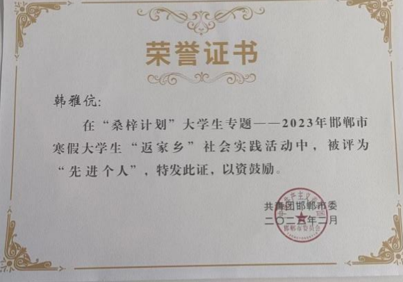 4.获得2019年河北省团委“冀星之星”荣誉奖章